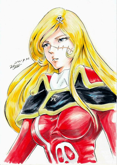 船長をエリート宇宙海賊のエメラルダスさんで描いてみました。「マリン出航!!」と聞くたびに、どうしても松本零士作品の登場人物としての船長を想像してしまうのですが...。