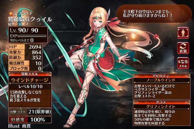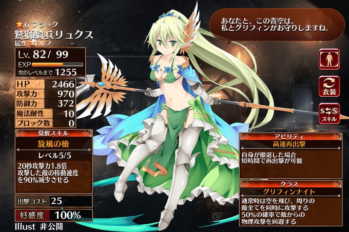 アイギスの今週から追加されたグリフィンライダー第二覚醒の確認分その1。