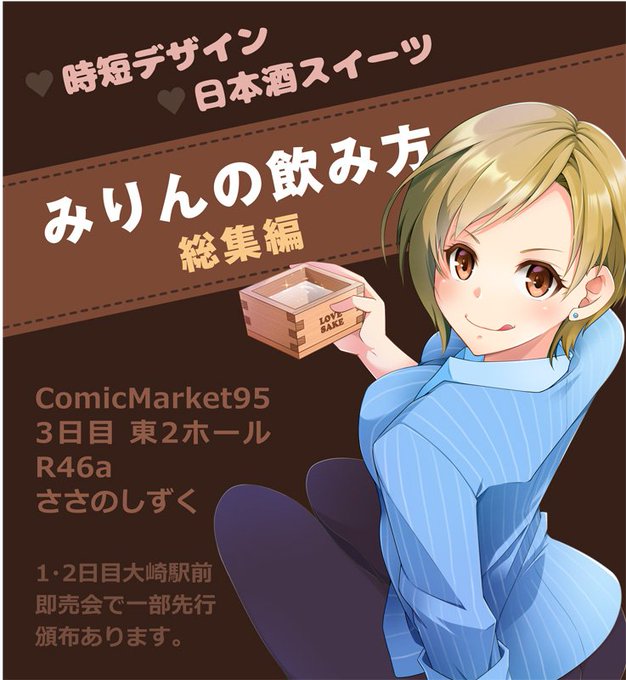 「みりんの飲み方」1・2冊目に熟成比較レビューや蔵見学レポなどを加えた総集編、日本酒スイーツ、コミティア126新刊の増ページ再版時短デザイン、サンプル公開中→https://t.co/DJIg1UDOJh