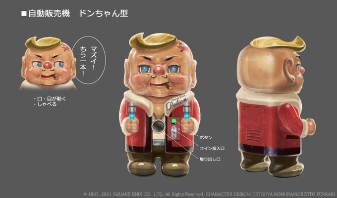 他の自販機に比べて異彩を放つドンちゃん型は、90年代にアミューズメント施設等でよく見かけた「おじさん型ポップコーン自販機」からインスピレーションを得ています👨🌾