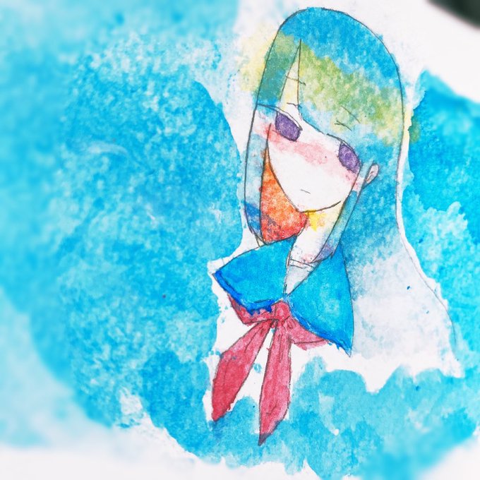 #コロナばっかりで気が滅入るから水彩載せようぜ 模写尾ちゃん やっぱ空とか描くときはちゃんとした紙に描かんとあかんと悟った一品 でも載せちゃう〜