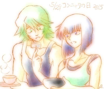 ちなみに。自分のPCのキルラキルピクチャ開いたらたまたま11/1の紅茶の日の絵が残ってて。コンニャクの日のと並んで表示されて、ほぼ似たような構図であることに気づきましたorz