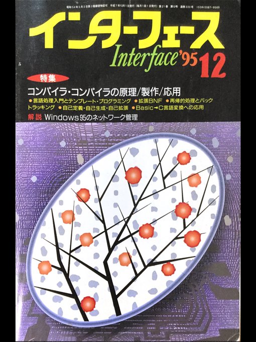 非裁断で取り込んでじっくり読もうと思ってる記事、interface誌の1995 12月、コンパイラ・コンパイラの特集記事。長らく本棚に入れてた。TLもはてブもコンパイラが熱くなってて?シンクロニシティ?を感じる。