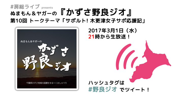 本日3月1日21時から「かずさ野良ジオ」生放送です。Skypeで遠隔配信予定ですが、MC2人に加えてゲストがいるとか(秘)「サポルト!」というサッカーサポーター漫画についてトークします!メッセージは #野良ジオ で!https://t.co/1BrcD62SQv