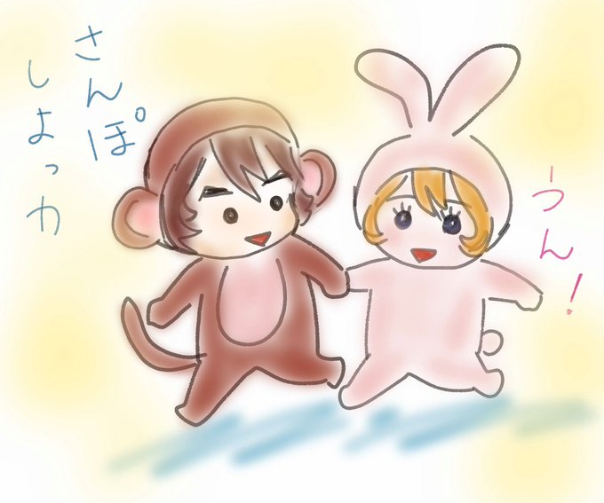 なぜサルとウサギなのかと言うと 過去に描いたコレの流れです🐵🐰