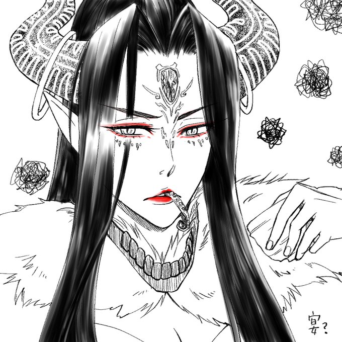 サンファンアンソロジー宴に釣られておいしそうな顔描くつもりが何故か刑亥さんのこんな姿を描いてしまった。イメージはもっと優雅な食事してるんだけど、もしかしたら片膝立てて飲んだくれた日もあったかもしれない…