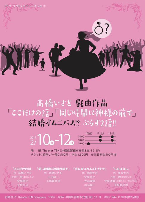 高橋いさを 戯曲作品『ここだけの話』『同じ時間に神様の前で』結婚オムニバス!?ぷらす2話!!