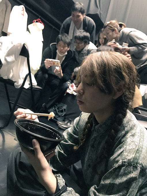 みんなでホラー映像をみて盛り上がってる横で、一人黙々とご飯をたべるみゆな(笑)