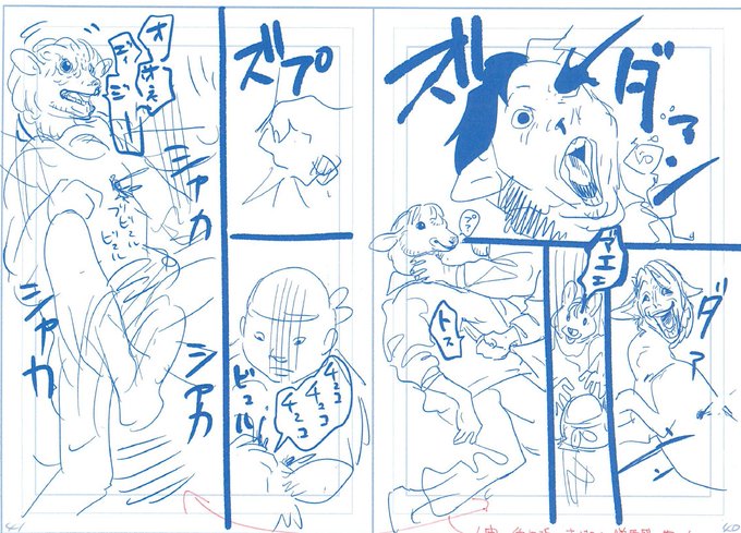 後編は清書の段階でもかなり変遷があり、特に大摩が外に出て仕留めるあたりは最後までコロコロ変わりました。不採用になったネームの一部です。〆るときにシャカシャカするのを入れてましたが、やはり嫌悪感のほうがまさると良くないので、最終的に掲載の形になりました