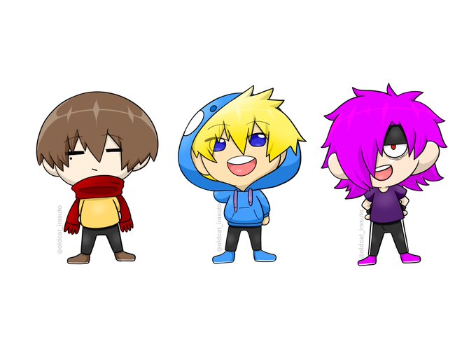 ミニキャラ描けた٩( ´ω` )و 最近この3人しか描いてない気がする( ˇωˇ )キノセイカ! #201ばんどろー #201ばんどうろ #ひじょう #シャチ助 #マフラーマン #ミニキャラ