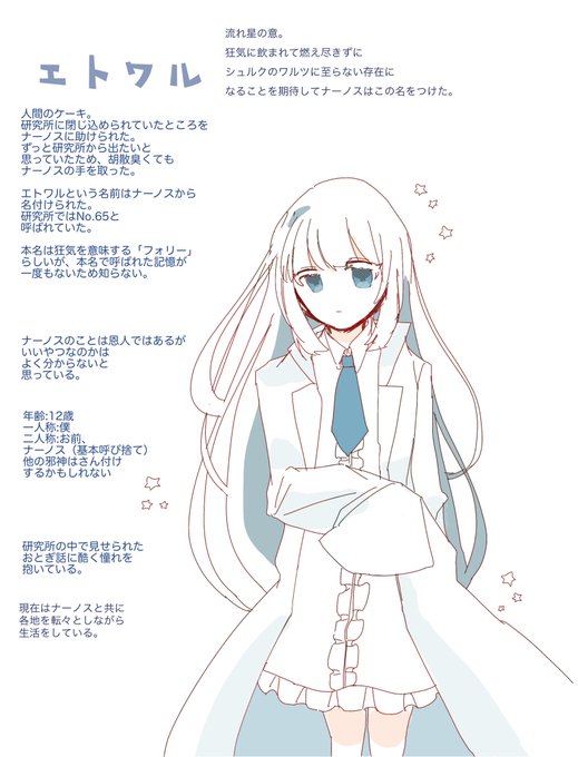#シュルクのワルツ エトワル とある研究所に閉じ込められていた人間の少女。ケーキ。 好奇心が強く、ナーノスが魅せるマジックに興味を持っている。