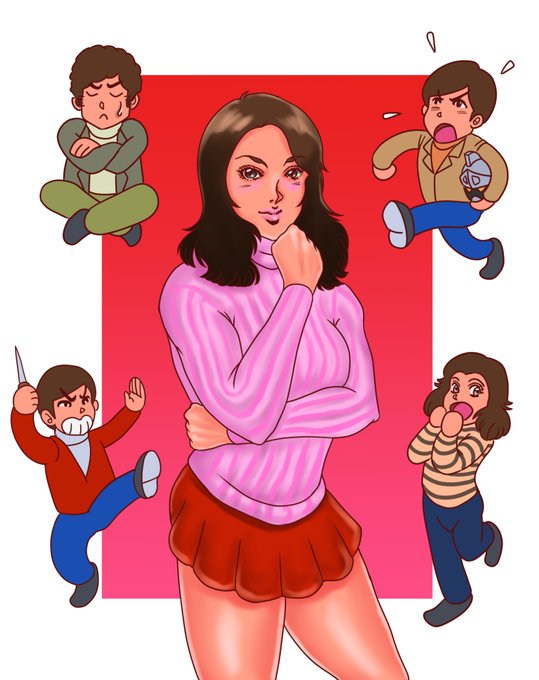 #シルバー仮面 より、春日五兄弟のデジタルイラストです。第5話・ひとみ主役回のイメージ。あの回のひとみ姉さんは美人過ぎて、東野英心さんじゃなくても惚れますね😍あ、そう言えば東野さんも描きたかったけど、スペースがなくて描けませんでした。あと、スカートが短いのは私の趣味ですw