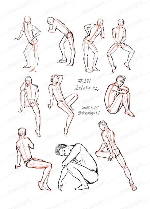 ポーズ模写。キャラ変換☺️✨