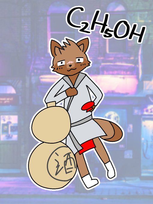 股間のヒドロキシ基がご立派な♂狸。モチーフはバッカス。(狸だけに「化かす」)