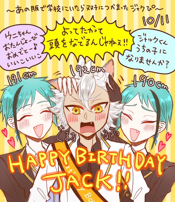 ジャックくんお誕生日おめでとう〜!!💛🌵🎉✨実験服エピで双子にかまわれるジャクが好きすぎるので誕生日もいいこいいこされてほしい👋おっきい三人かわいい👋