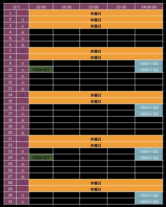 12月1日 8日 15日 22日 29日