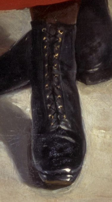 手袋をはめる手には血管が浮かんでいます。そのリアルな描写も会場でぜひチェックしてください。#フランシス・グラント