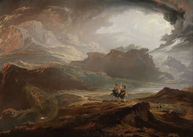 カタストロフィ画の名人ジョン・マーティン『マクベス』、スコットランド国立美術館展で印象に残った一枚。CG的な不穏すぎる背景と、人物は小さくミニチュア的で妙にアンバランス。ゲームFFのコンセプトアートみたい。
