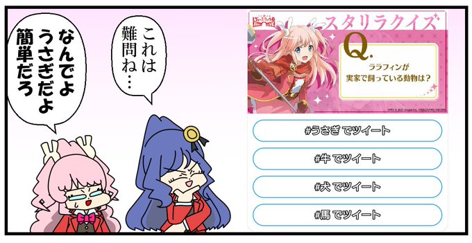 ララフィンが実家で飼っている動物は…【うさぎ】だと思う! 正解はこちら☟をチェック!現在スタリラでは毎日1連無料キラめきフェスガチャを開催中✨さらに期間中のログインで「限定★4メモワール」がもらえる🎁 #スタリラクイズ