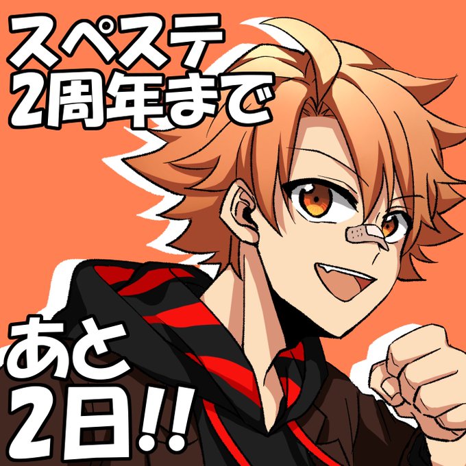 \スペステ2周年まで あと1日!/ ラストは俺です。 ついに明日でスペステ結成から2年が経ちます。 いつも俺たちを応援してくれて本当にありがとう…! 俺たちの軌跡はこれからも止まらない。 スペステをどうかこれからもよろしく! 明日は……🦋🐳🍊😈 #スペステ2周年 #スペステ
