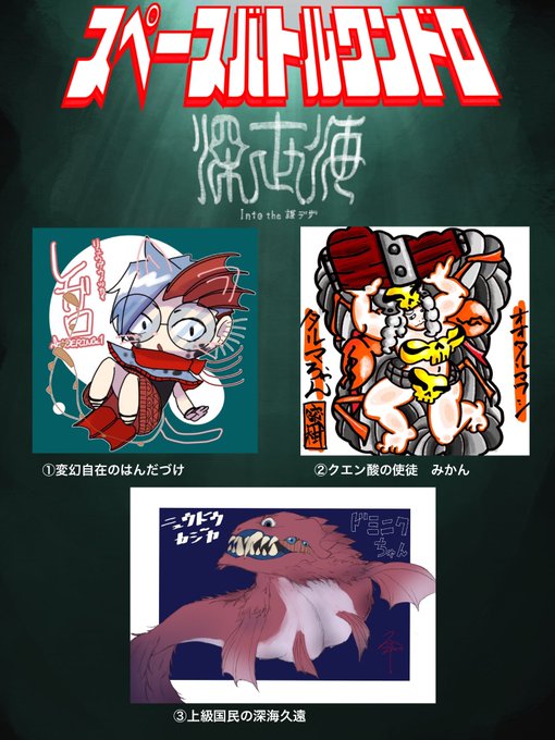 前回の虫同様みんなで好きな深海生物言い合ってトレードして1時間でデザインし、またトレードして1時間で書く苦行を今回は勇気ある10人で行いました!!