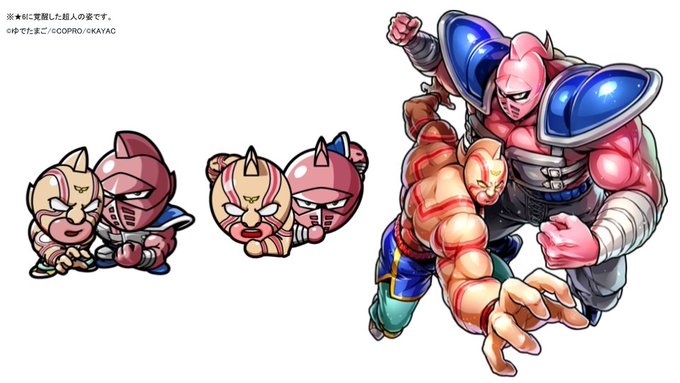 「ゴッドセレクテッド キン肉マンスーパー・フェニックス&キン肉マンビッグボディ(★6)」のアビリティは炎ロープブースト / 有刺鉄線ブースト / 毒耐性 / 火山弾ブースト