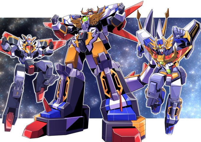 昨日の何やかんやのオレ解釈で先に描いた三体との差別化と「動く」スーパー合体ロボの解像度をあげて見た今回のスーパーファイブロボ。中のファイブロボの部分がハッキリ見えるようにして、パーツを装着してる感じを強く押し出してみました~。これで線画完成、今日はここまで~ https://t.co/fYrKhHbum7