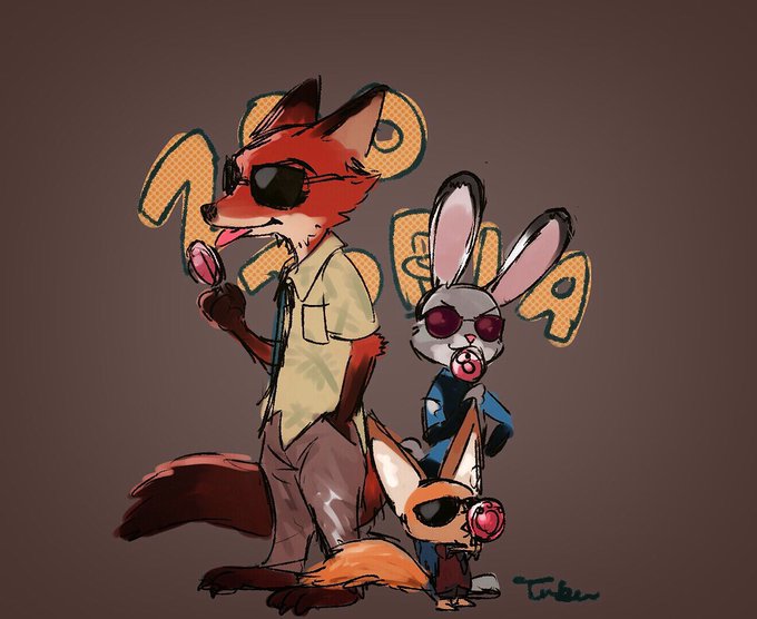 前に描いたズートピアファンアート🐰🦊もう2年も経つ。 #ayupast