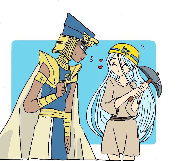 危ないから早く離して欲しいセト様と、セト様のロッドとおそろぽくて嬉しいキサラちゃん(セトキサ)