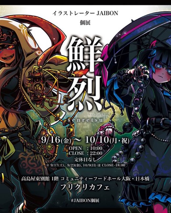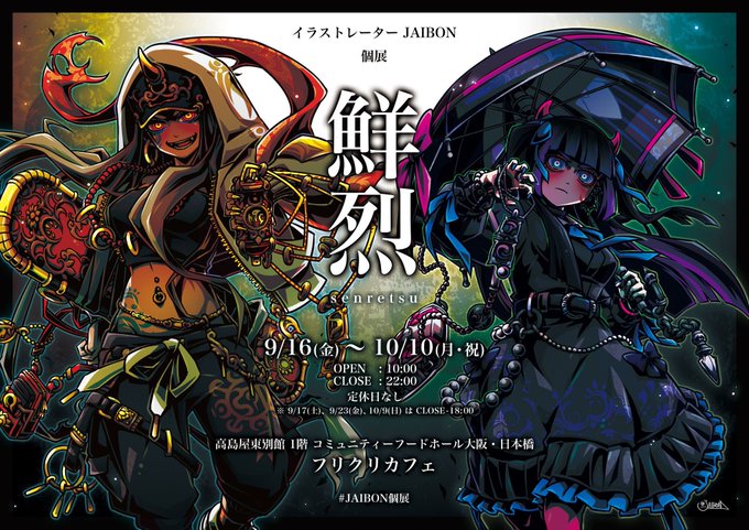 人気イラストレーター JAIBONさんの個展【鮮烈】と人気ボードゲーム 【セブンヴァイス】のコラボカフェをコミュニティーフードホール大阪・日本橋にて開催いたします🎉🎉
