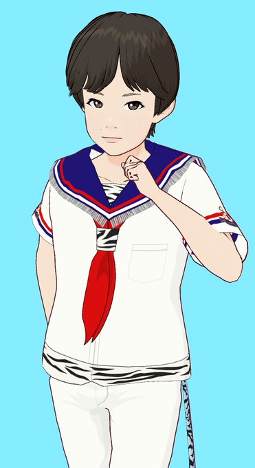 日付超えちゃったけど、輝くん誕生日おめでとう! 重ね着機能使えるようになり、これまでできなかったセーラーの襟やスカーフに段差ができるようになりました(*´ω`) #VRoid #田代輝 #ゼブラスター