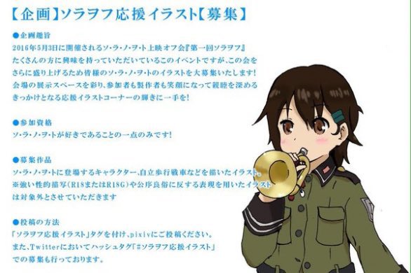 今回も『#ソラヲフ応援イラスト』を大募集いたします!左のタグ付けか下記のピクシブにてご投稿ください!不参加でイラスト投稿だけでも大歓迎です!要項は写真参照 #ソラノヲト