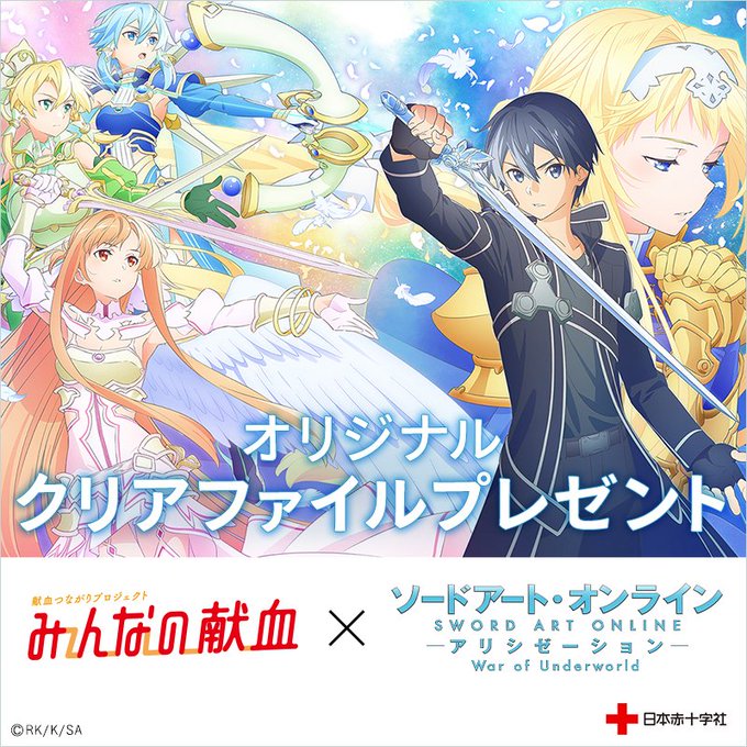 「みんなの献血」×「ソードアート・オンラインアリシゼーションWar of Underworld」のお知らせ|新着ニュース・プレスリリース・イベント|大阪府赤十字血液センター|日本赤十字社 https://t.co/NSGSXSv8x7