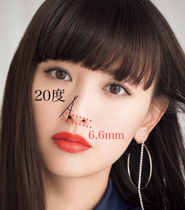ゾウ鼻は最も避けるべき形。 2枚目のイラストで参考にして欲しい🔻 ①鼻先が長い(8mm以上) ②鼻翼の張り出しが強い(30度以上) 一方で、美しい鼻は小鼻が小さく、鼻先もちょうど良い長さである。👧鈴木えみ #小鼻縮小 #鼻整形