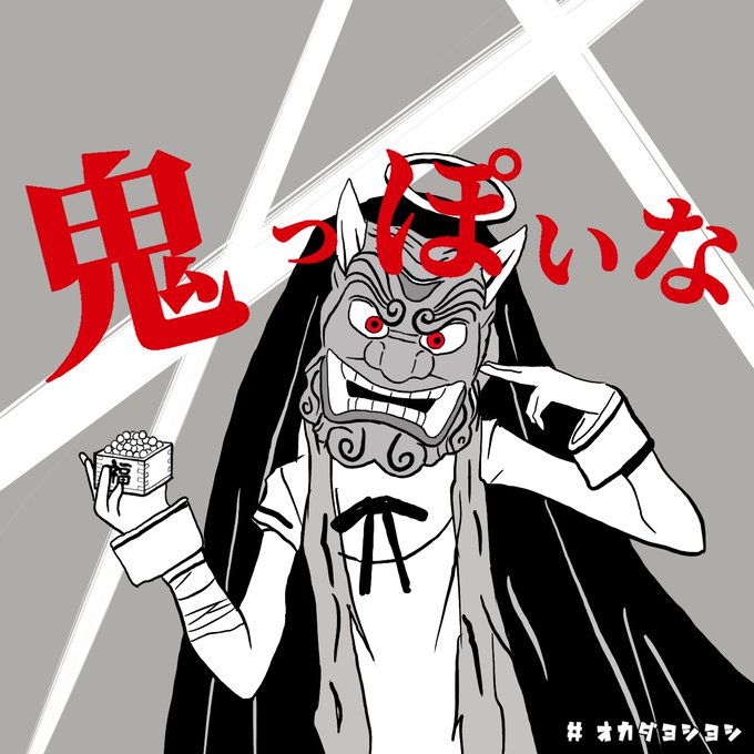 タイトルちょい変えイラスト 「 神っぽいな / ピノキオピー 」 #神っぽいな #鬼っぽいな #タイトル #曲名 #ちょい変え #ちょい変えイラスト #とぅとぅるとぅとぅとぅる #節分 #鬼 #豆 #イラスト #オカダヨシヨシ