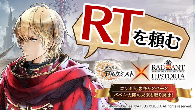 【RTで貰える】ラジアントヒストリア パーフェクトクロノロジーコラボ記念キャンペーン実施中!抽選で召喚チケットが貰える!詳しくは https://t.co/WTnuAZ8STq #タガタメアトラスコラボ #タガタメラジヒス