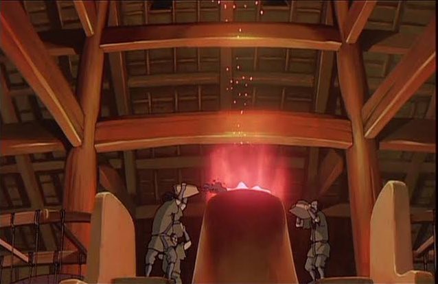 当初の絵コンテでは、終盤のタタラ場崩壊はなく、あっさり終わっていたそうです