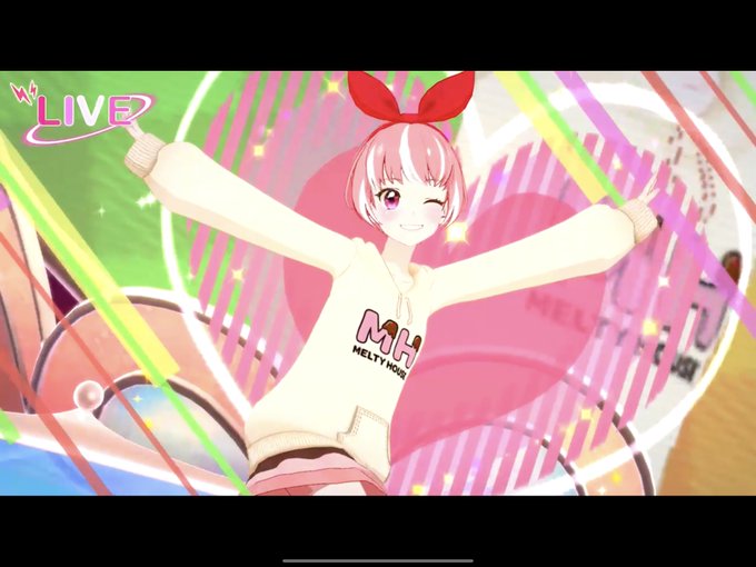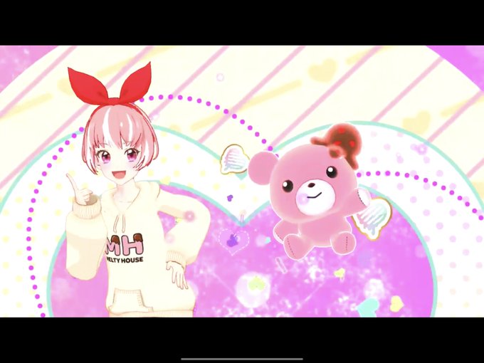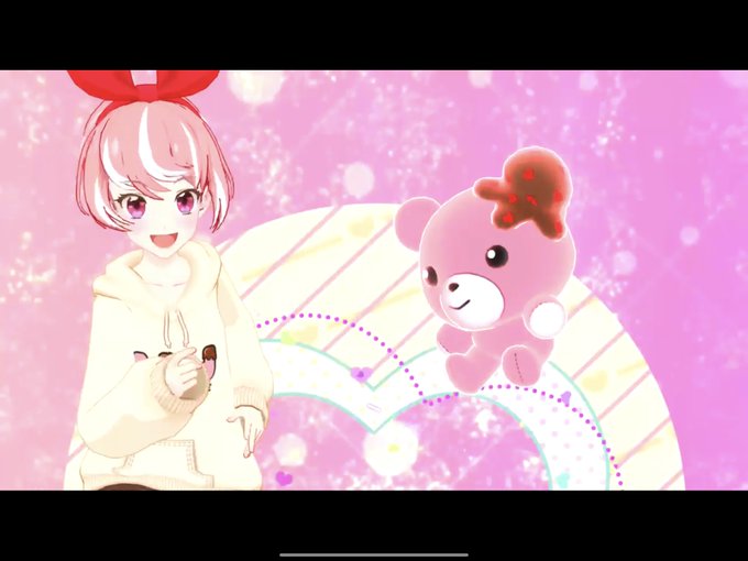 ドレスチェンジの写真だと、ちょうどスカートの部分が見えませんが、チョコがかかったいちごみたいな色味のミニスカとダボっとした袖のパーカーが可愛いです。