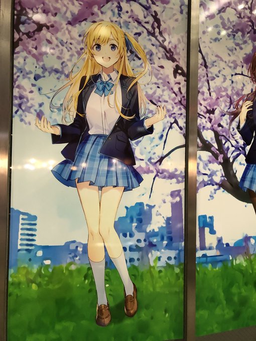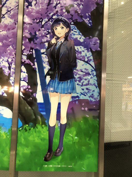 さて、福井駅に用があってついでに早速観光案内所に出来た #チラムネ ヒロインズの足羽川の桜🌸パネルを見てきました。夜に見ても映える!