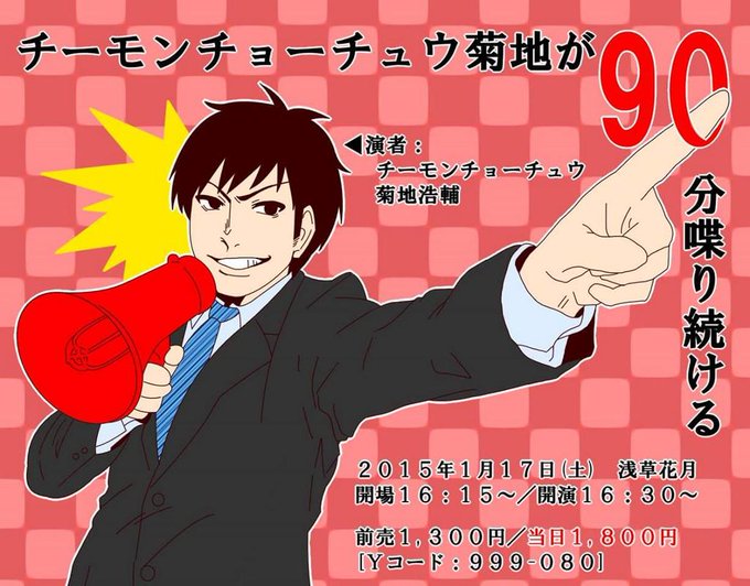 本日16時半から浅草花月にて「チーモンチョーチュウ菊地が90分喋り続ける」です!まだ空席ございます。当日券は1800円。お暇なら行っちゃいましょう、ソラマチから続けて行っちゃいましょう!