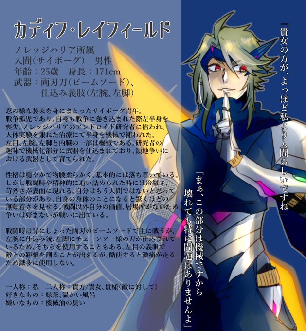 テリトリウム【@Teritorium_00 】の企画にお邪魔いたします。サイボーグ忍者です。自分のペースになりますがたくさん交流できたら嬉しいです~よろしくお願いします! #テリトリウム_CS #テリトリウム_ノレッジ