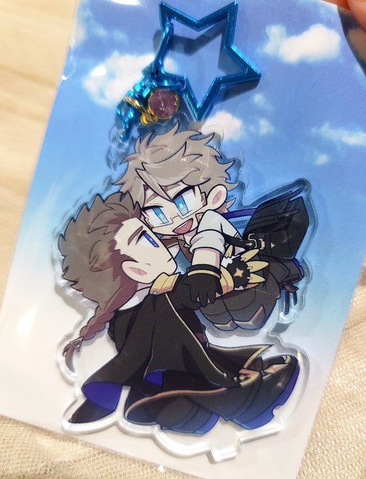 webオンリーで頒布するお空ver.のデアアイアクスタキーホルダーです☁️大きさは本体70×70、台座55mmとなっております。表打ち印刷でグロスコート加工してあります。(台座は加工されていません)星ナスカンにアメジストチャーム付き。