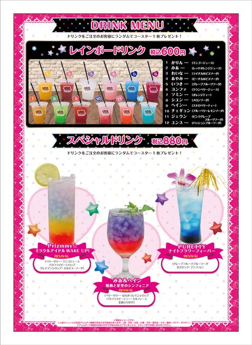 Prizmmy☆の皆さんのカラーをイメージしたドリンクよ❣️