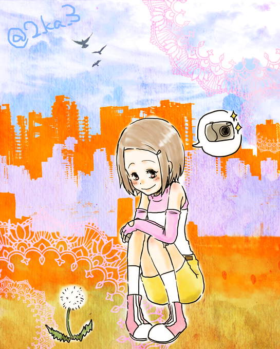 写真を撮るのが好きなヒカリちゃんには写真部に所属していてほしい。そして道端に咲いてる花とかをほっこりした笑顔で撮っていてほしい。そうただの妄想である。 #デジモン版深夜の真剣お絵描き60分一本勝負