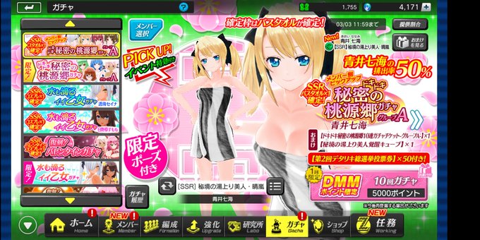 今、デタリキZXというアプリでバスタオル女子が出るガチャやってるんだけど。 えろいと言うよりも、薫子を思い出しました。 ぱすメモは健全なゲームです。 頭にタオルのってるからね!♨️