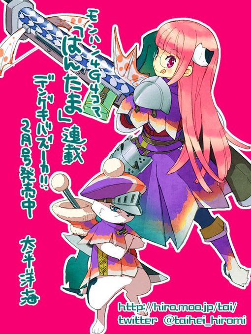 もうすぐ3月号が出ますが、現在発売中のデンゲキバズーカ!!2月号の服着てる方のハンター、ヤエさん(ジャギィ装備+ガノスプレッシャー)とトレンドガードのオトモのクラウス(ジャギィネコ一式)。年末はあっぷあっぷしてて描けなかったので投下。