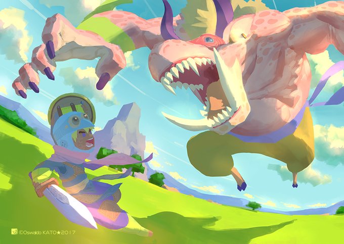 ドラクエっぽいアレで、背後にドラゴン描いてみた🐉🔥