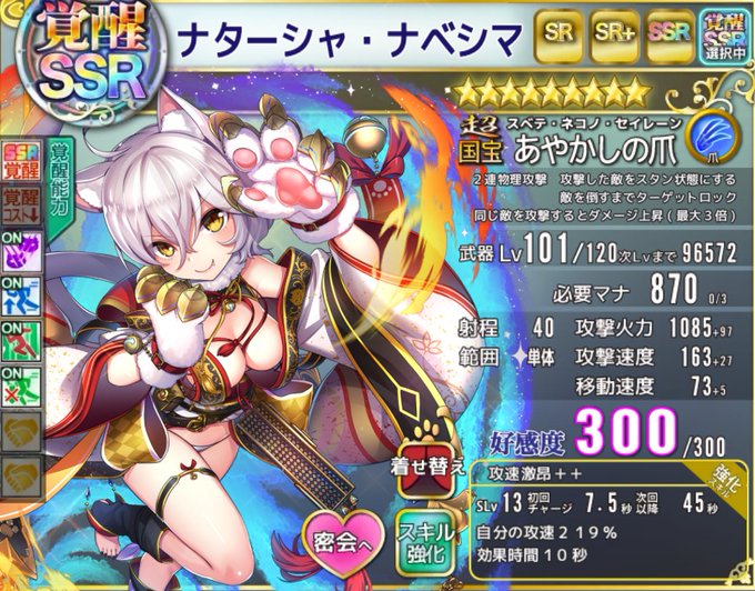 ナターシャ・ナベシマの覚醒能力に「覚醒SSR解放」「テンション維持」を実装しました。