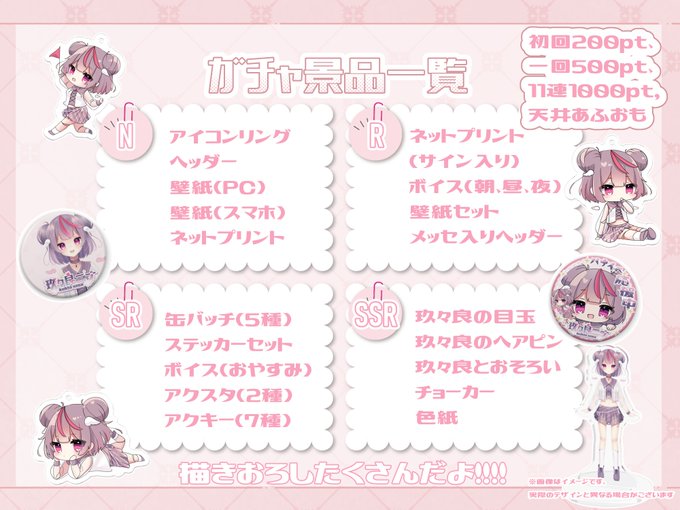 明日はガチャ枠!新衣装も含めたグッズたくさんあるからチェックしてね〜!!