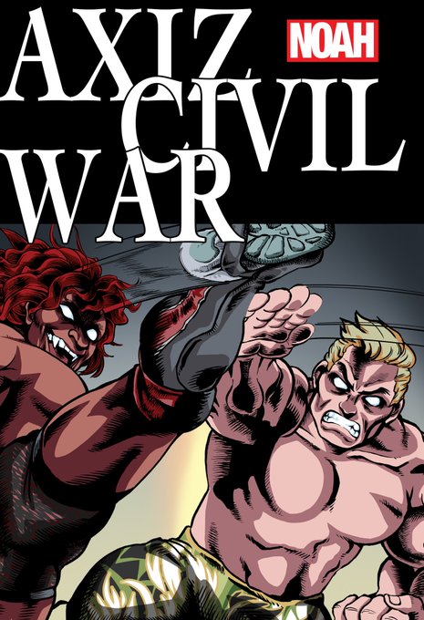 一気にトンで11月の #ノア横浜裁判 実は9月から映画のシビルウォーパロで描き進めてたんだけど、全く終わり方が見えなくて路線変更してたという無駄足をしてました。ぶつかってる感のあるエフェクト入れたかったけど、やり方が分からなくてそのまま。 #ABEMAでノア日本武道館見ようぜ
